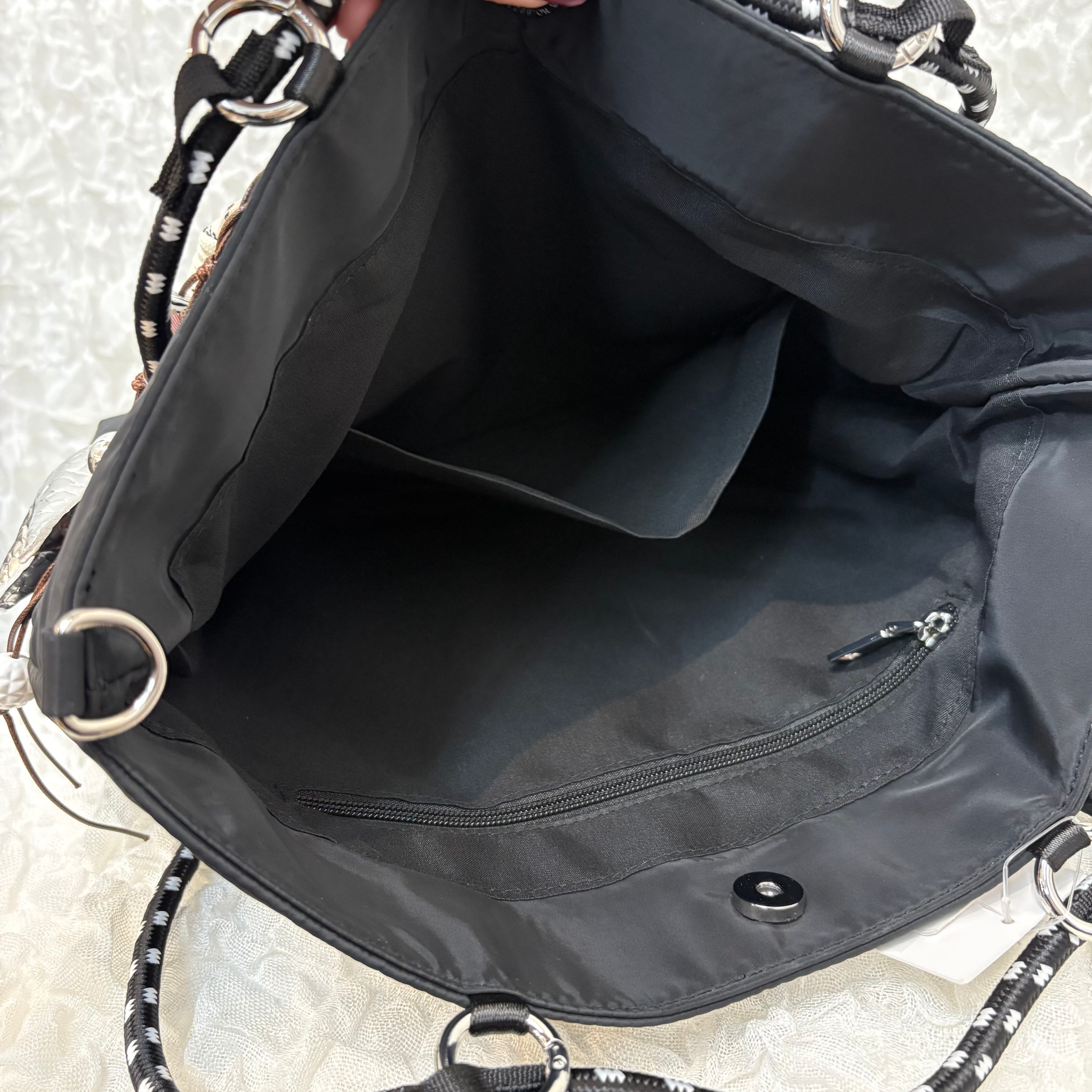 中綿入りのモコモコナイロンバッグ。